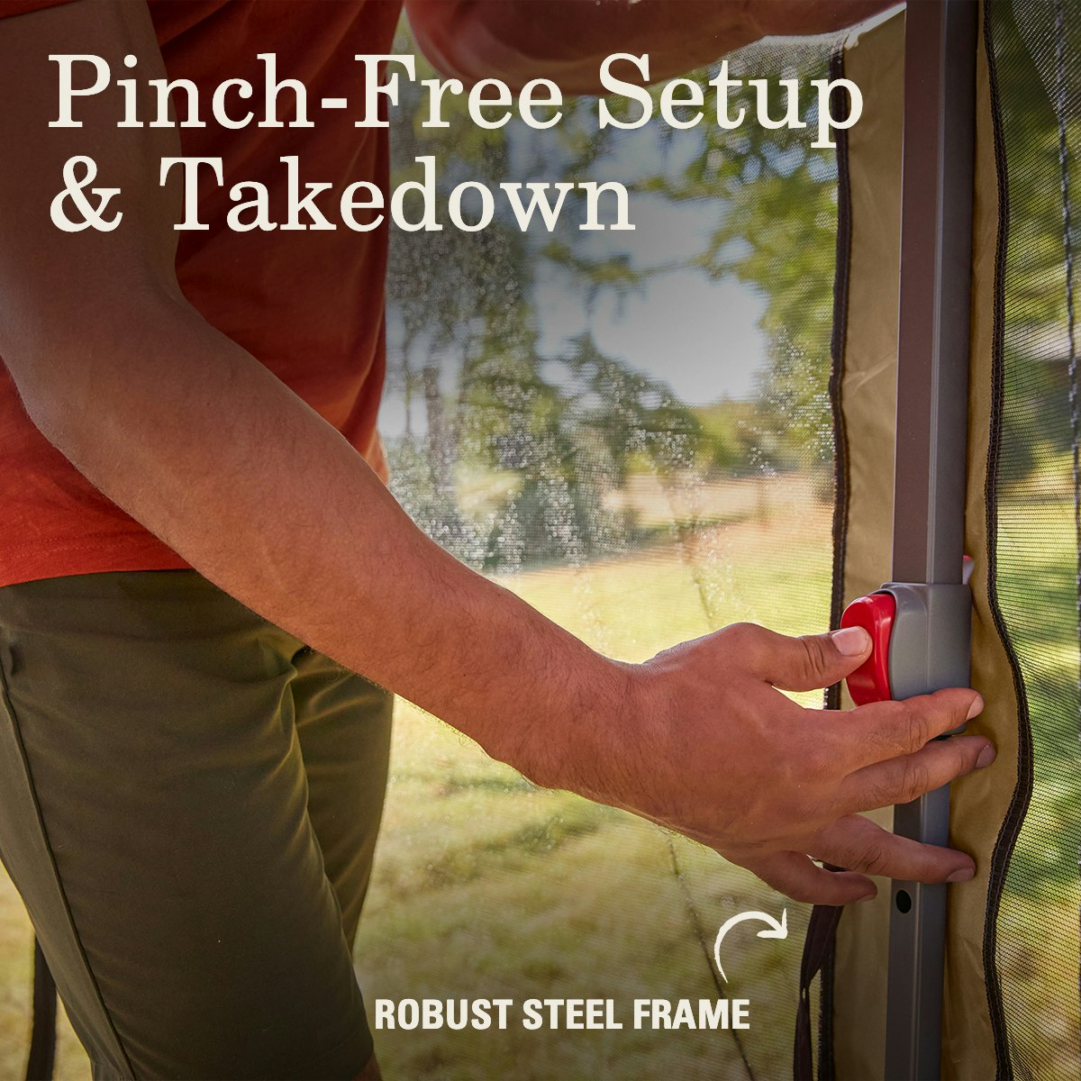 Bring on the bug-free outdoor adventures with the Back Homeâ„¢ screen canopy tents. Lounging with the family in the backyard or hanging with friends in the park? The Back Home 15 x 13 Screen Tent sets up easy using a one-push center hub with OnePeakâ„¢ technology. Plus, we made sure the screen tent fits over a picnic table so you can eat inside the enclosed mesh walls without the pests.