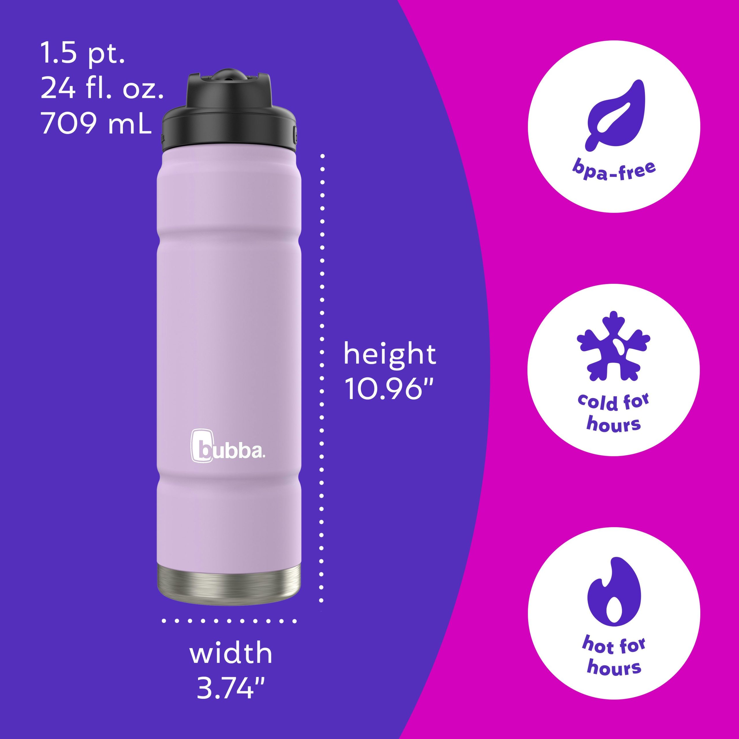 Heading to a picnic with friends or need to stay hydrated during a workout? Bring the bubba 24oz Trailblazer Insulated Stainless Steel Water Bottle. With a straw lid for easier drinking and double-walled stainless steel construction, it will keep your favorite drink cold up to 24 hours without condensation, letting you hold on comfortably. With a leak-proof lid you can sip with ease and without a mess. The lid has a built-in carry loop making it easy to carry on the go and the spout cover works to protect the straw spout from dirt and grime. When you’re done for the day, throw the lid onto the top rack of your dishwasher and hand-wash the body for no-fuss cleanup.