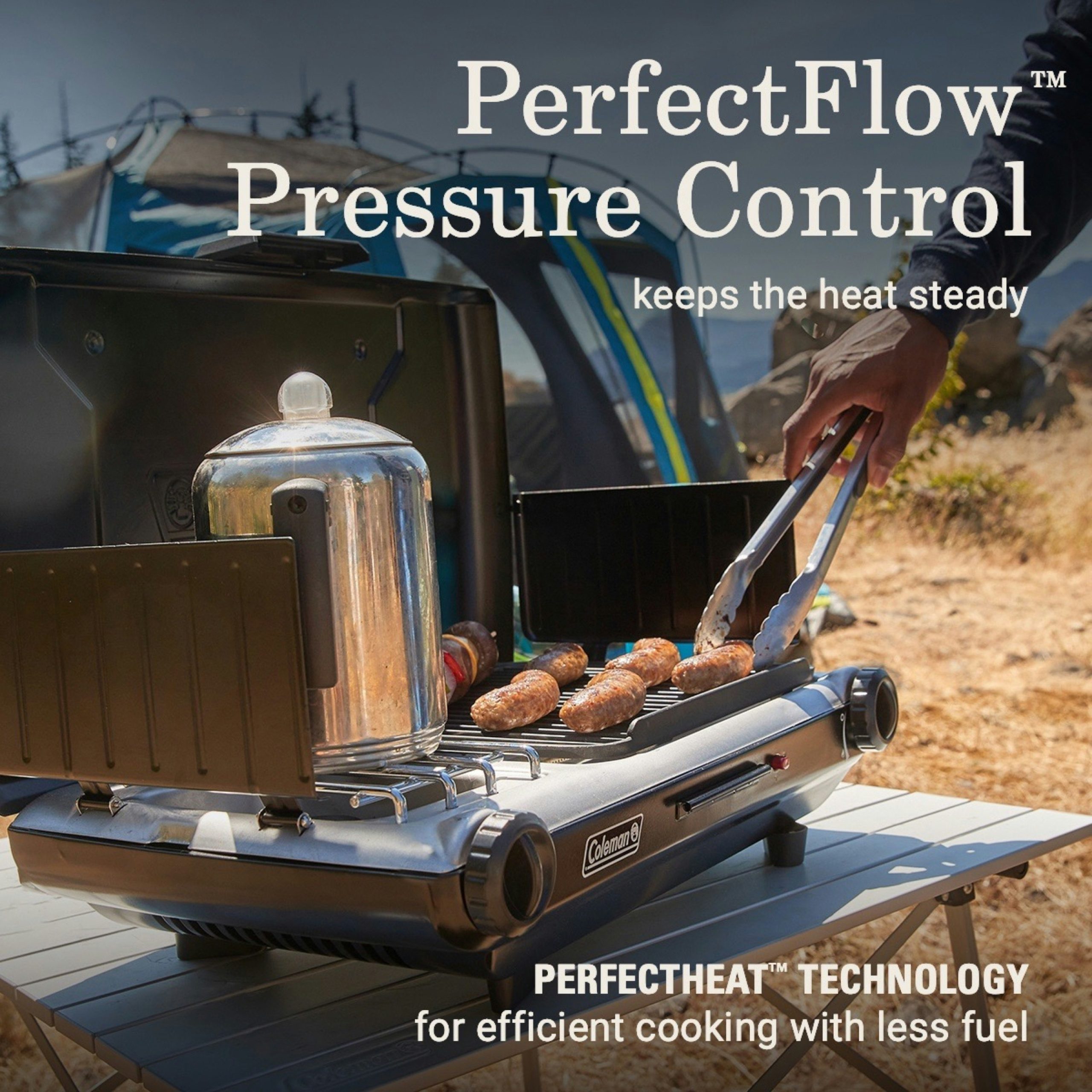 • 2 INDEPENDENTLY ADJUSTABLE BURNERS: For precise temperature control; PerfectFlow™ pressure control and PerfectHeat™ technology to keep the heat steady with less fuel