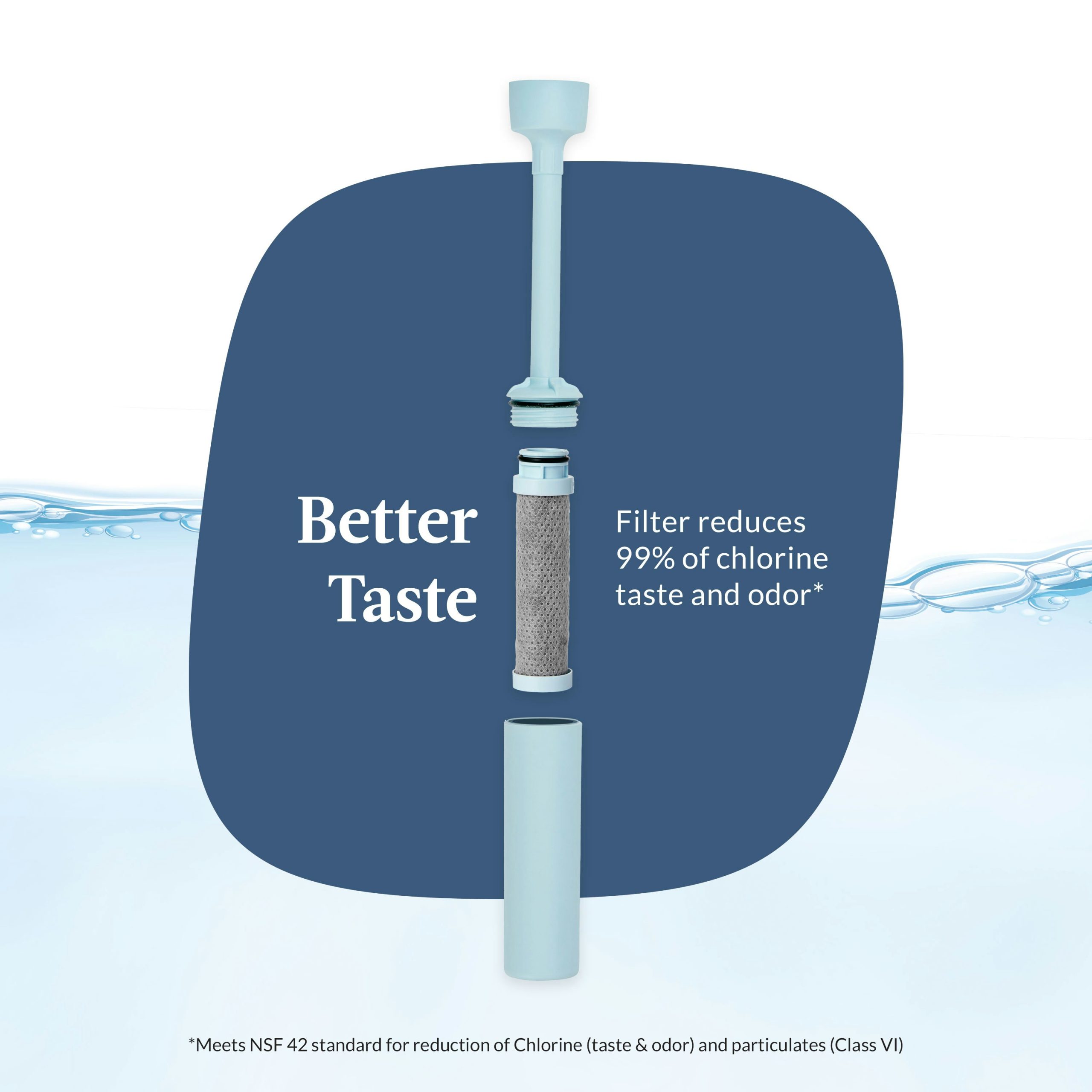 - Carbon fiber filter technology reduces 99% of chlorine taste and odor​ for better-tasting water*