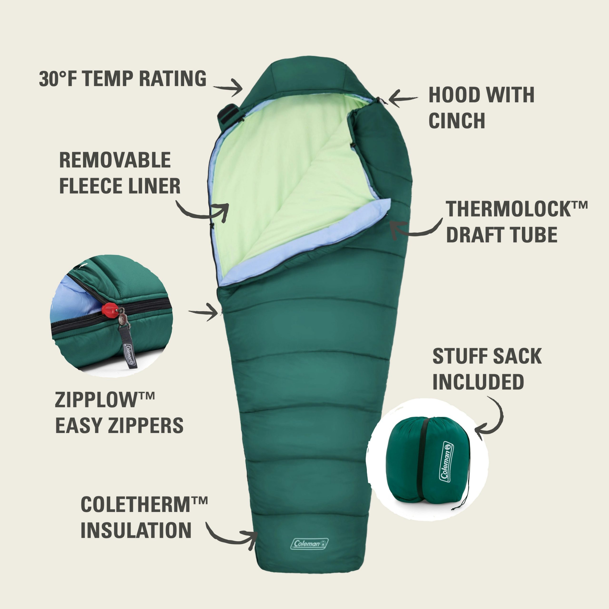 - EASY CLEANING: Fleece liner machine washes to keep your sleep system clean