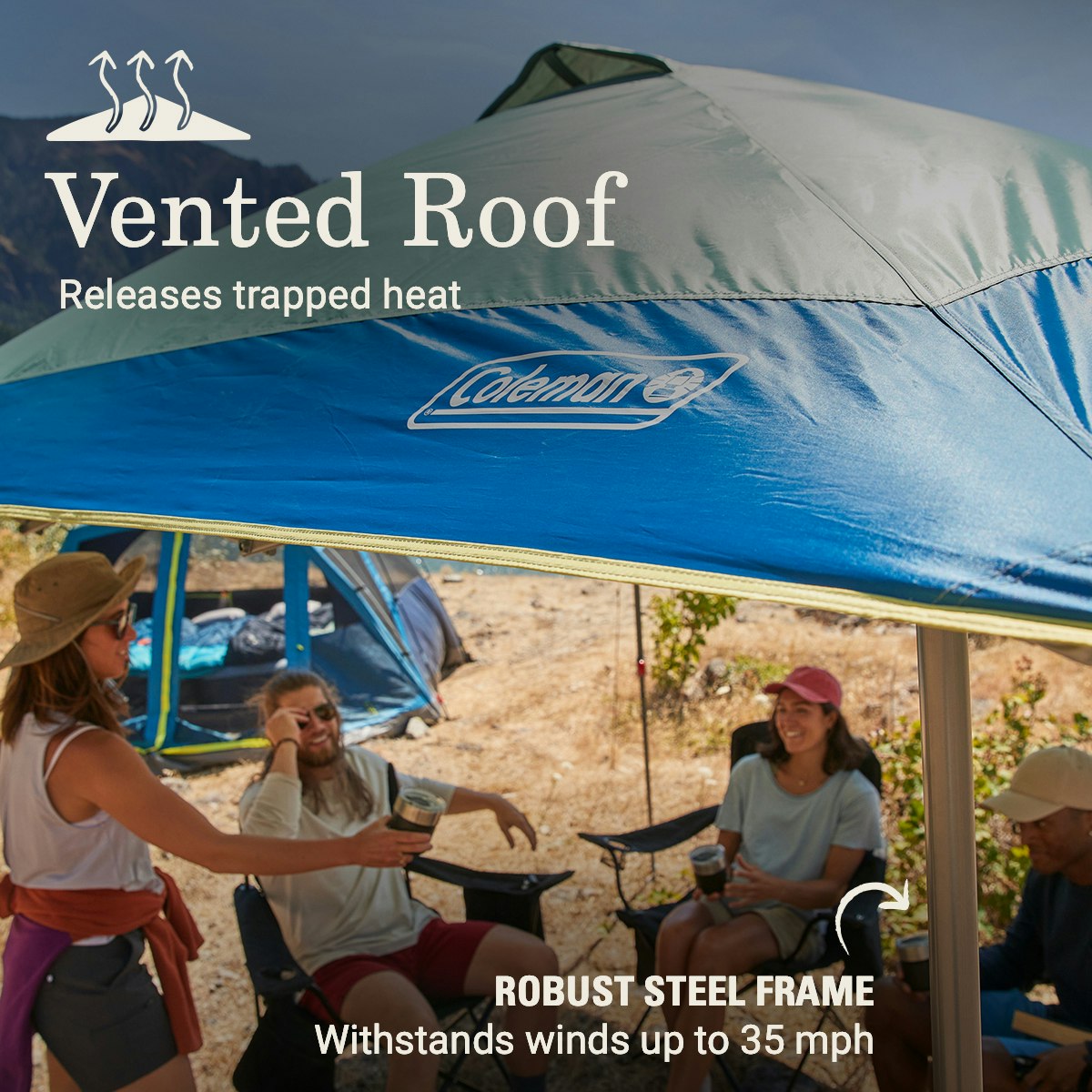 - VENTED ROOF: Releases trapped heat, so you stay cool