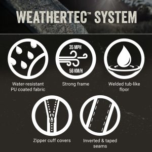 • WeatherTec system keeps water out with patented welded floors and protected seams