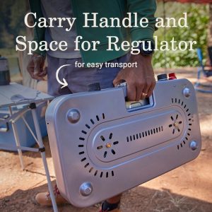 • EASY TO TRANSPORT: Recessed carry handle, secure space to store regulator, and nylon carry case for accessories; heavy-duty latch keeps the stove closed while traveling