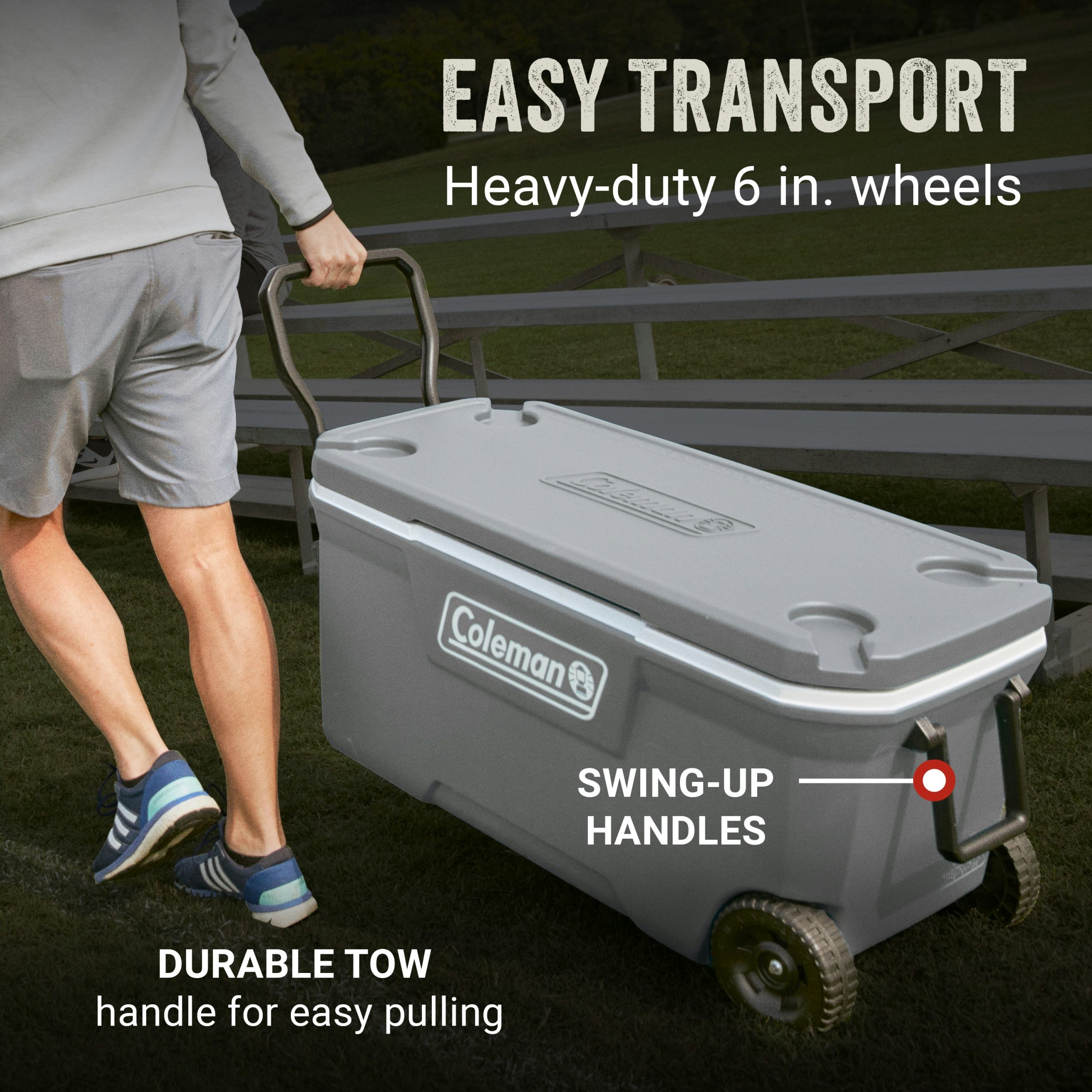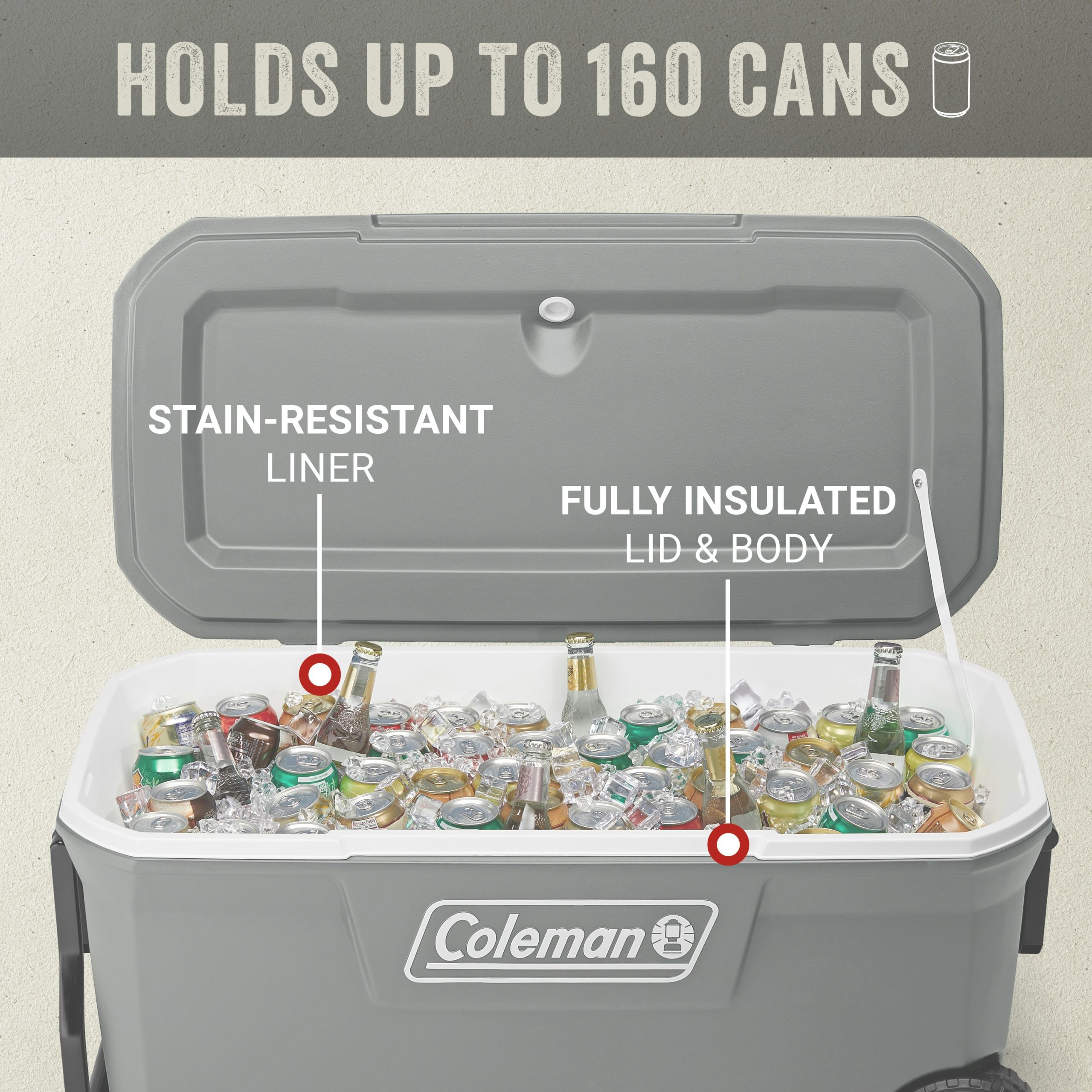 Inspired by our Wichita roots and the people who work there, the Coleman® Classic Series of hard coolers brings uncompromising quality and a legacy of craftsmanship and adventure wherever you take them. The Classic Series 100-Quart Wheeled Cooler has all the features you’ll need for the outdoors from tailgating with friends to annual camping trips. The fully insulated lid and body Keeps the Ice™ for up to 5 days so you can enjoy cold drinks at the campsite after hiking the trails or cooking hearty meals. Going to the beach? The heavy-duty 6-inch wheels and durable tow & swing-up handles help you haul a full load while staking out the perfect spot. Drinks are always within reach and don’t spill because of the cup holders molded to the lid. If more guests swing by the tailgate or picnic, you’ve got an extra seat with the Have-A-Seat™ lid that supports up to 250 lbs. The large capacity fits up to 160 cans so you’ll have plenty of drinks for you, your crew, and anyone else who wants to join in on the fun.