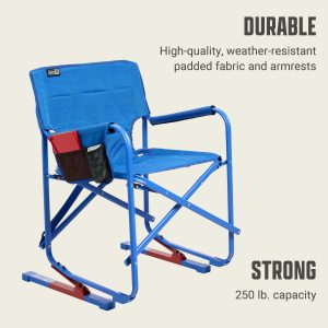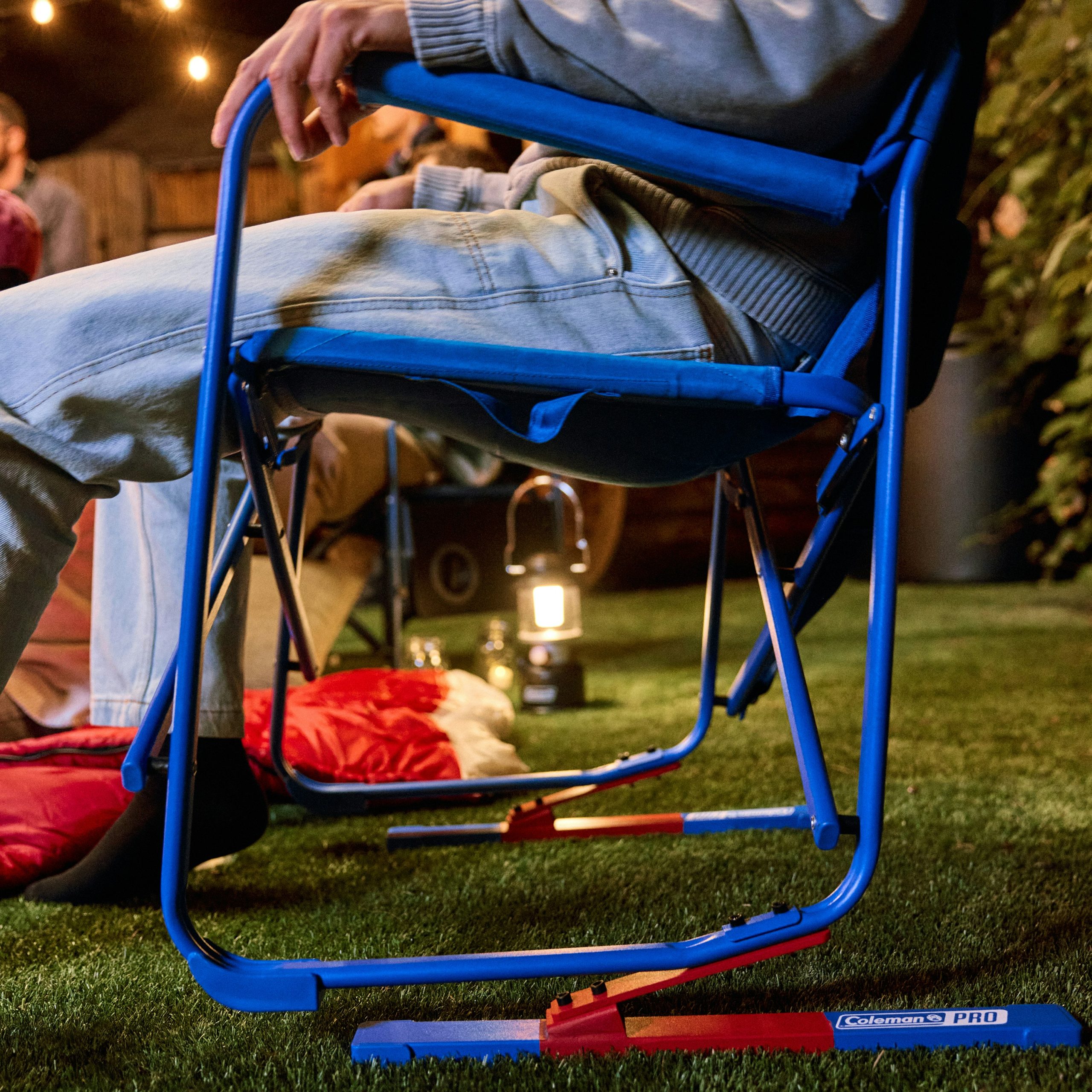 Kick back and relax with the zero-gravity rocking system on the Coleman® Pro Rocker Chair. From the campsite to the backyard to the sidelines, this easy-folding outdoor rocking chair is built to make the most of your downtime with a smooth, quiet, and nearly effortless rocking. Padded, angled armrests and high-grade padded seat fabric keep it comfy, and the sturdy frame can support up to 250 pounds.