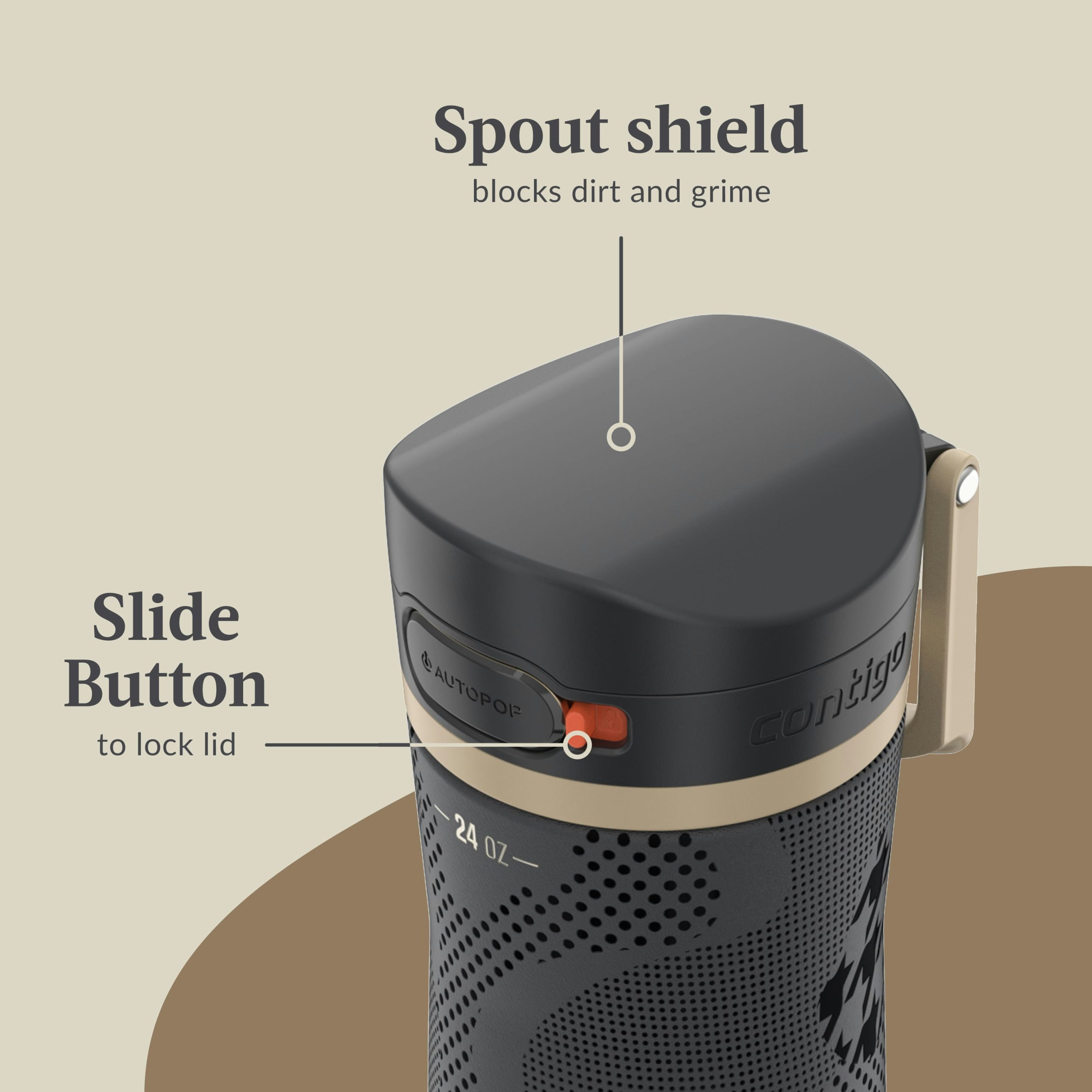 • HYDRATION ON LOCK: Button lock prevents the top from accidentally opening