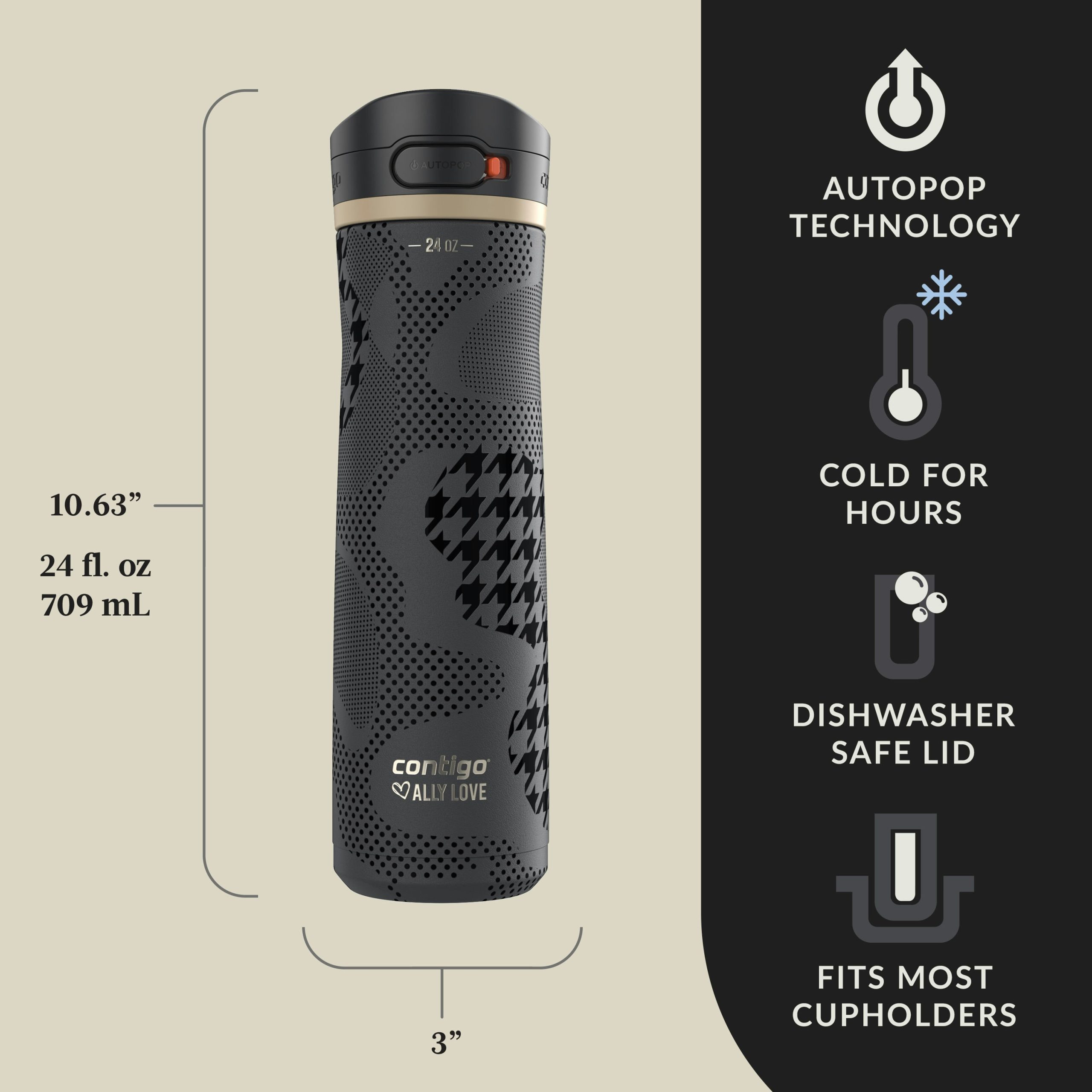 • CONTIGO X ALLY LOVE: Built for stylish on-the-go hydration in partnership with our Chief Hydration Officer Ally Love