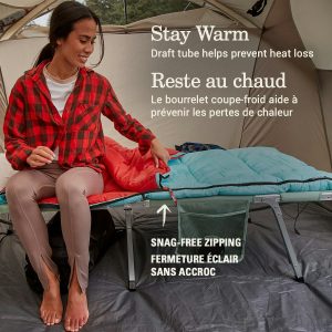 You cherish the outdoor environment and at Coleman® we do, too. That’s why our Flatlandsâ„¢ cold-weather sleeping bags are made with 100% post-consumer-recycled polyester in the shell, liner, and Ecothermâ„¢ fill. It’s designed to keep you comfortable in mild weather and temps as low as 50°F. Plus, it’s loaded with quality Coleman details. The premium zipper has snag-free ZipPlow construction and a Thermolockâ„¢ draft tube to keep cold air out. A handy interior pocket keeps cell phone batteries warm and small items like keys easy to find, even in the dark. And when it’s time to pack up, the Roll Controlâ„¢ feature keeps the bag straight, while our handy Quick Cordâ„¢ secures without tying. 33″ x 75″ size. Machine washable. 5-year limited warranty.