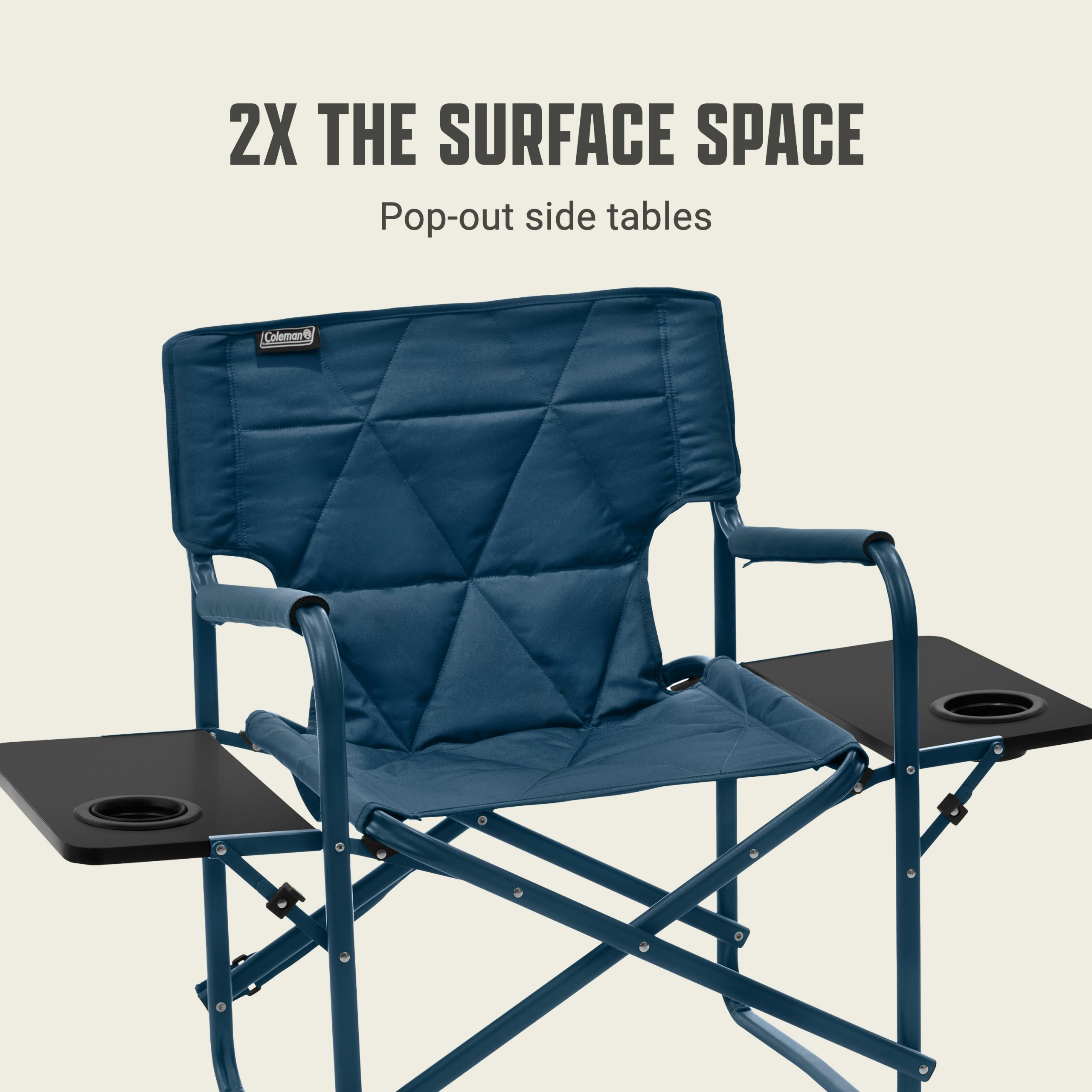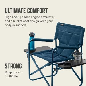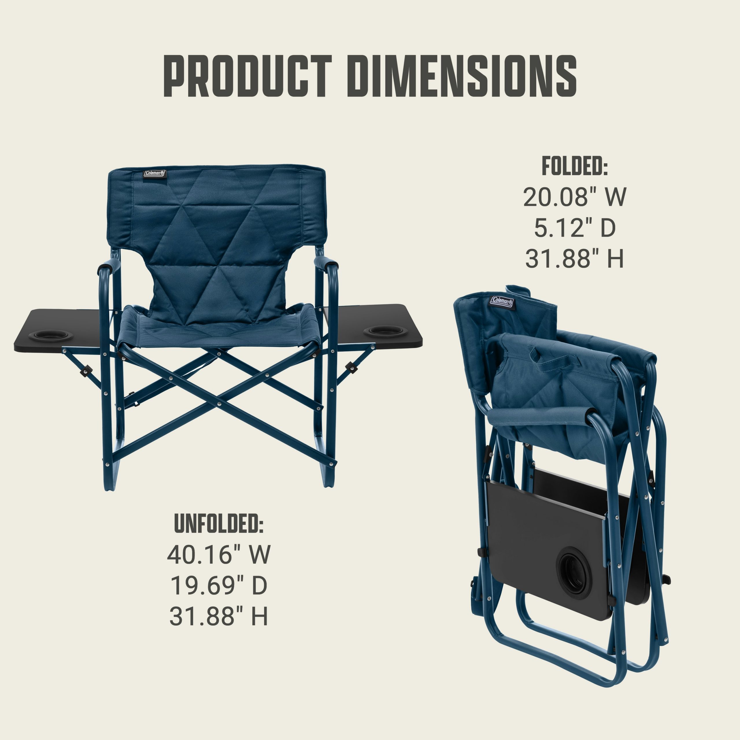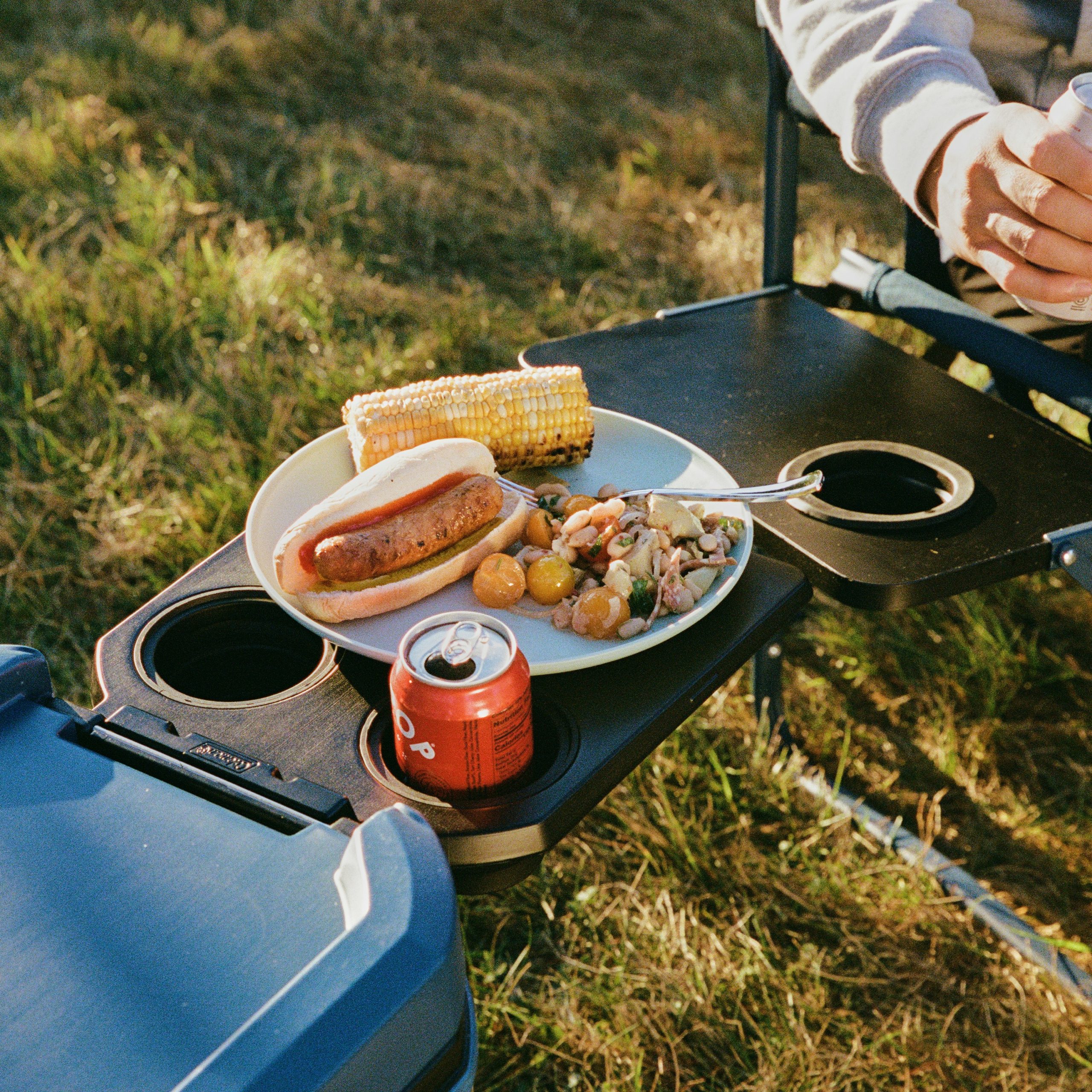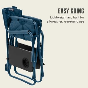 Relax at the beach, campsite, or in the backyard in the Coleman® Flex ‘N Goâ„¢ Chair. Dual pop-out side tables are the ultimate flex: they keep your BBQ plate, drink, or card game close at hand. Enjoy the flexibility of simply folding up your side tables when it’s time to pack up—there’s no need to pack an extra table. And with double the cup holders, you can loan one to the friend sitting next to you at the campfire. The Flex ‘N Go beach chair’s high back and angled armrests, combined with a bucket seat design for lumbar support, keep you comfortable for long days of lounging at the music fest or tailgate.