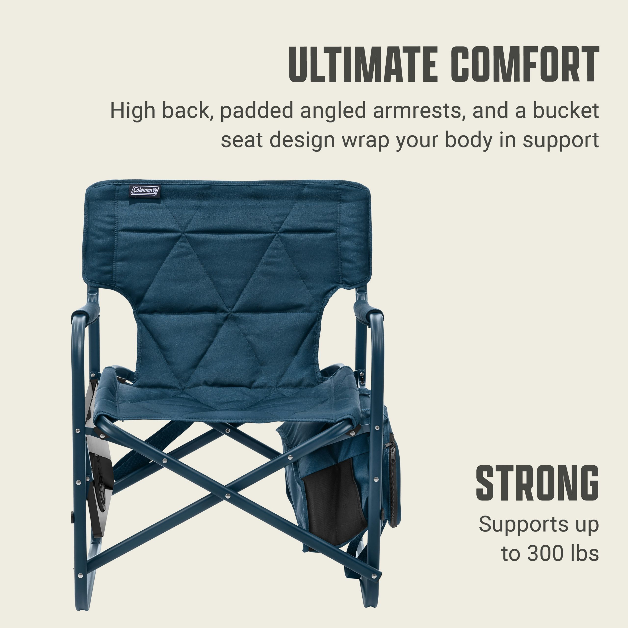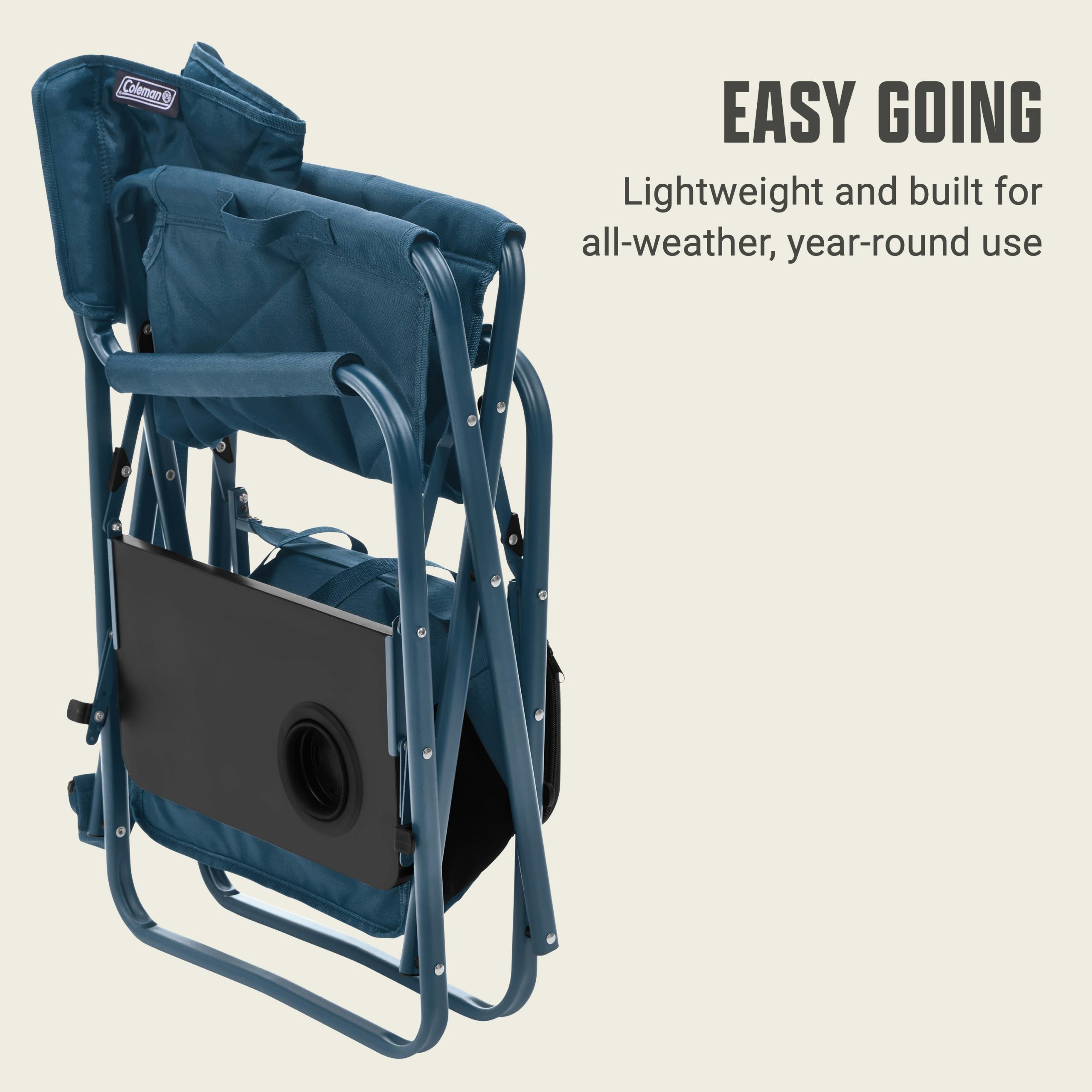 Post up at the tailgate, music fest, or campsite in the Coleman® Flex ‘N Goâ„¢ Chair with a built-in table and removable 28-can cooler and you’re ready to rock. Enjoy the flexibility of always having a cold drink close at hand or ready for your pals with the convenient built-in cooler. The cooler’s hard top doubles as a tabletop, so you don’t have to sacrifice space for convenience. This beach chair’s high back and angled armrests, combined with a bucket seat design for lumbar support, keep you comfortable for long days of lounging at the tailgate or campsite. The built-in 28-can Coleman® cooler is soft-sided for easy packing when the show’s over, and it’s removable in case you want to take it on the move.