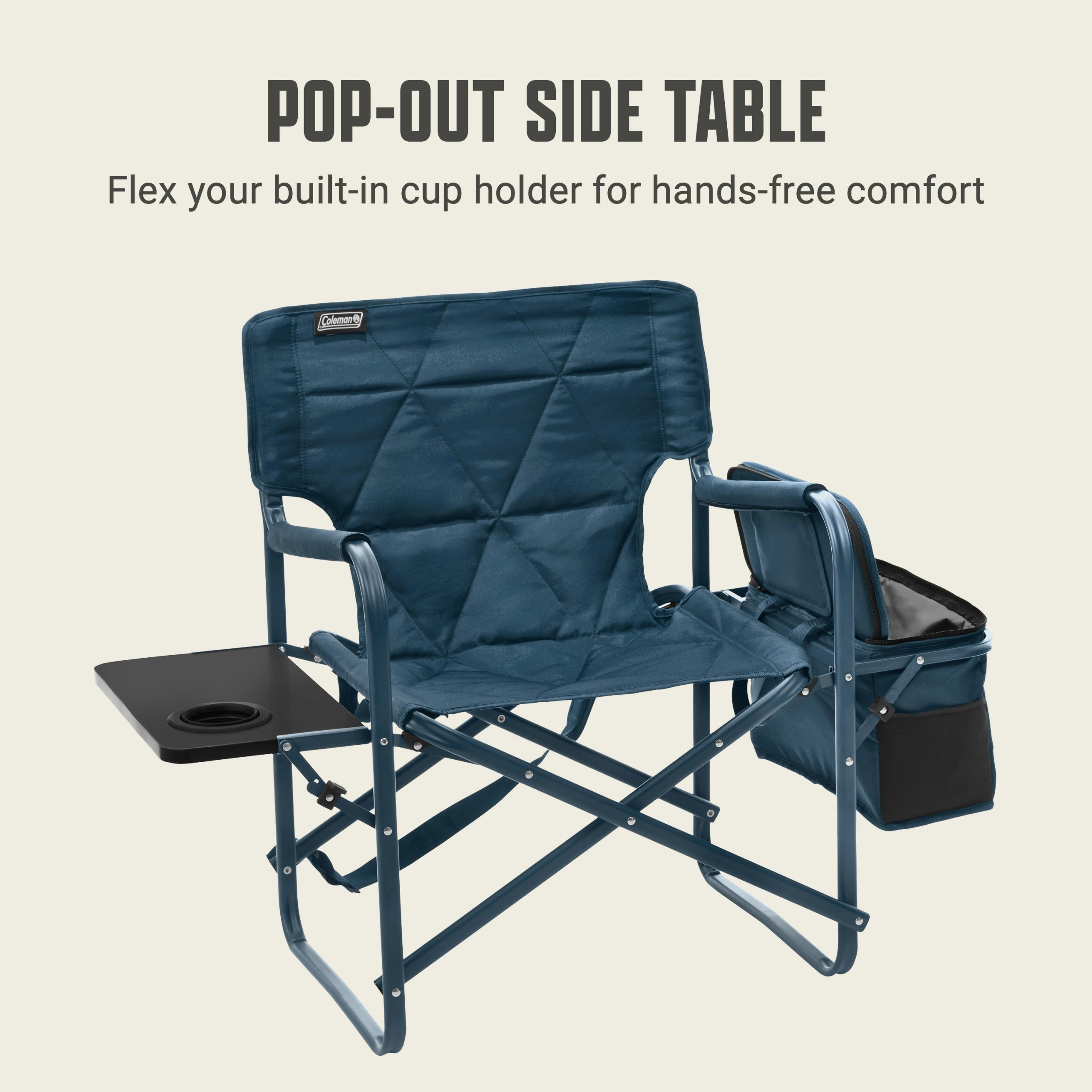 • POP-OUT TABLE & COOLER: A handy built-in side table and 28-can detachable Coleman® soft-sided cooler with a hard-top lid​