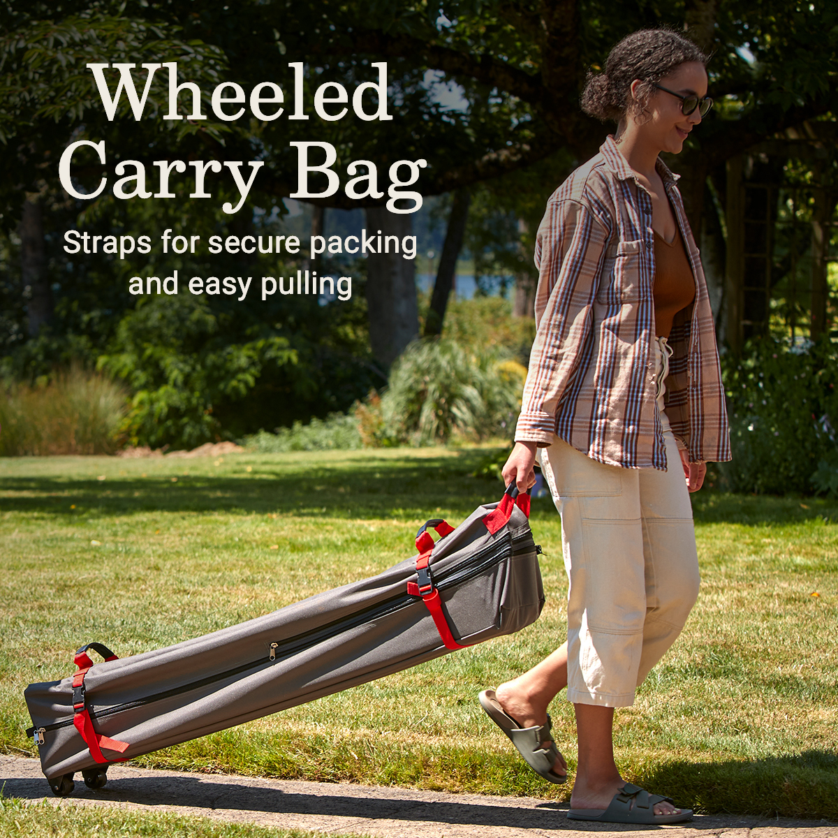 • WHEELED CARRY BAG: Includes straps for secure packing and easy pulling