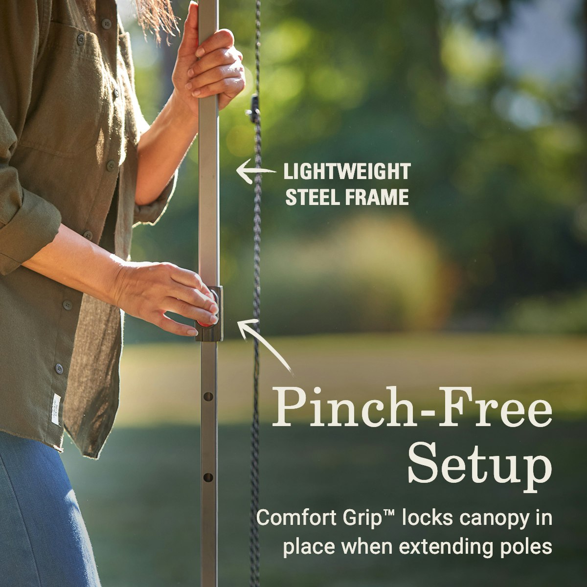 • PINCH-FREE SETUP & TAKEDOWN: Comfort Gripâ„¢ features easy-to-use buttons for locking the poles in place when setting up or taking down